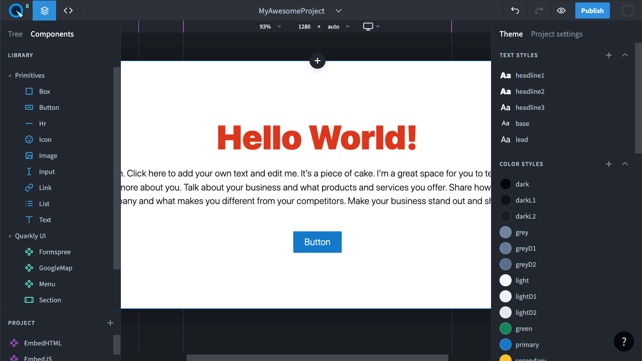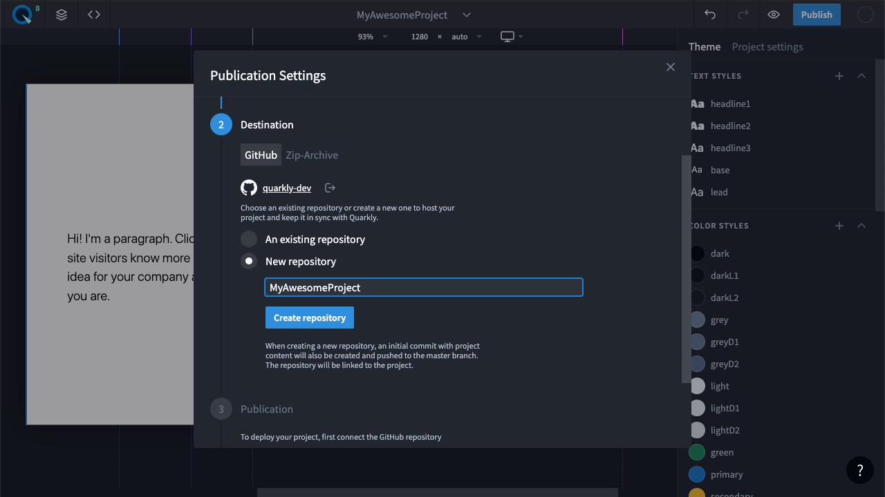 Поздравляем вы сделали и опубликовали свой первый проекта на Quarkly.