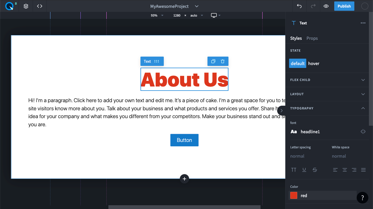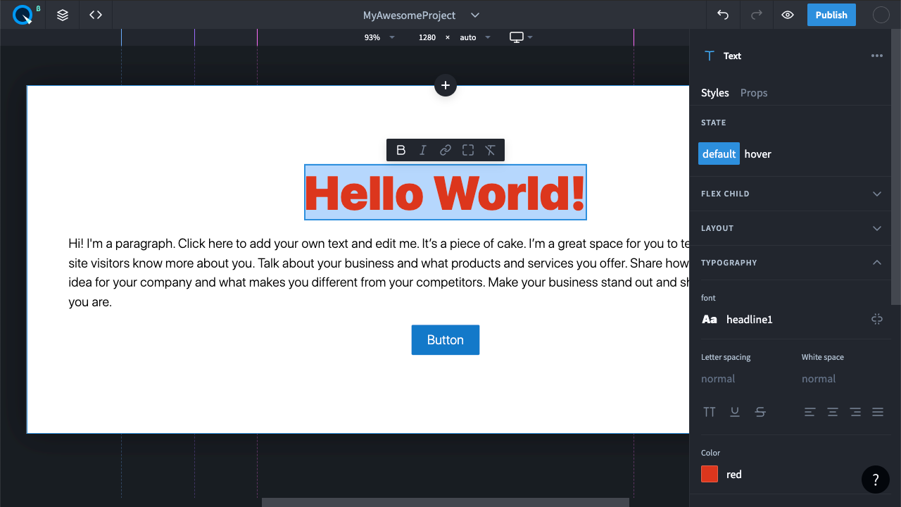 Измените цвет текста в правой панели свойств