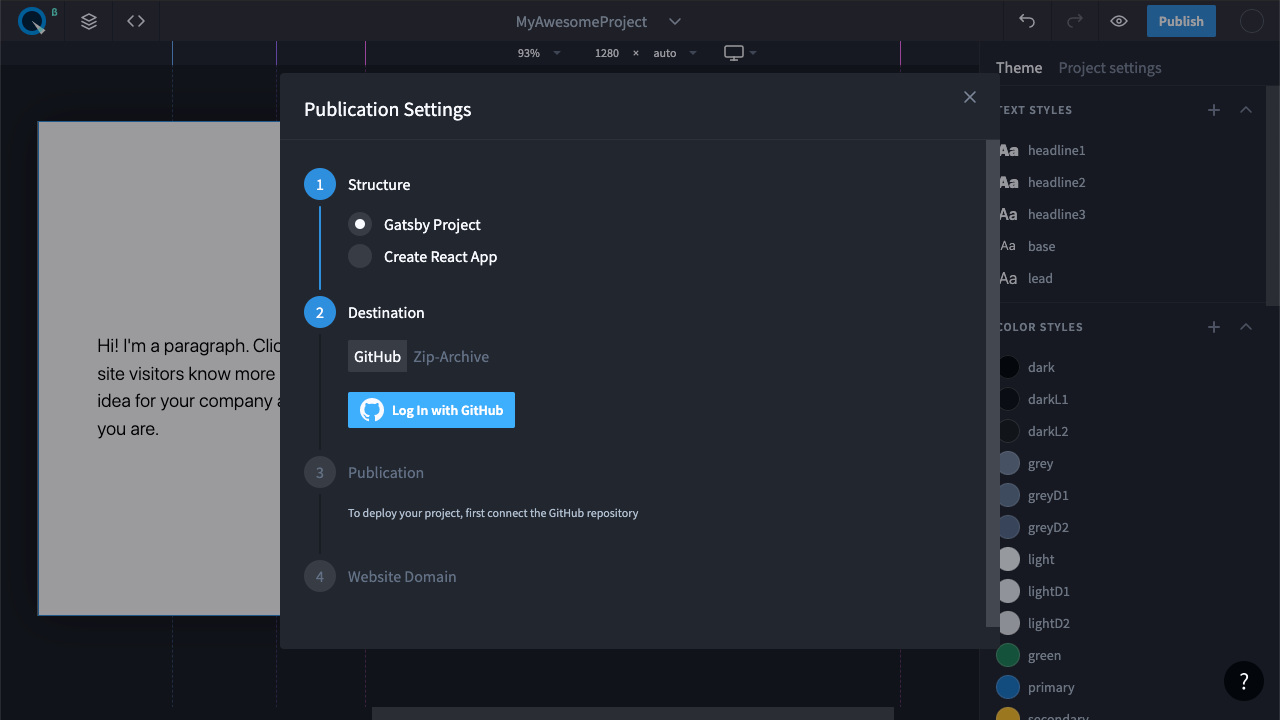 Опубликуем проект. Чтобы начать публикацию, нажмите кнопку “Publish”