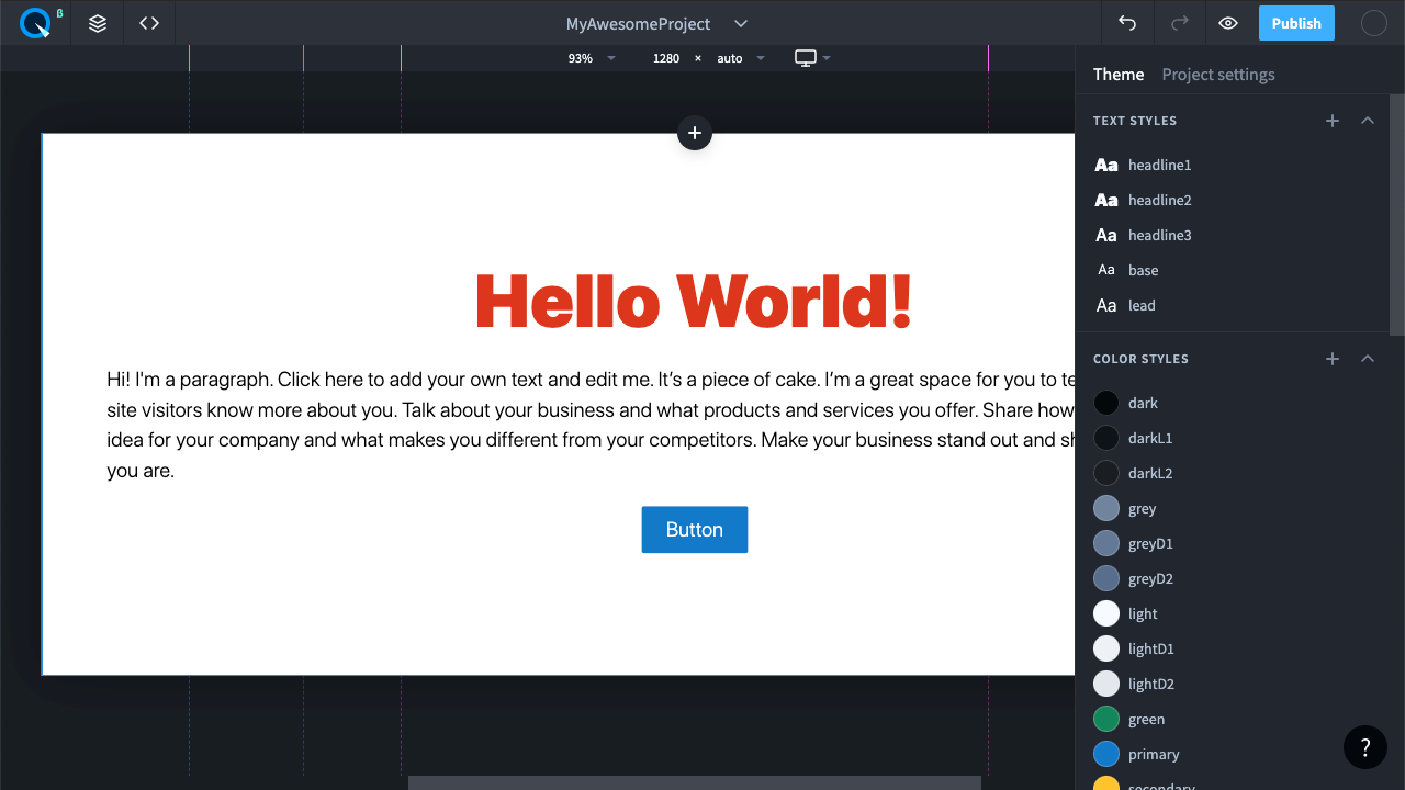 Опубликуем проект. Чтобы начать публикацию, нажмите кнопку “Publish”