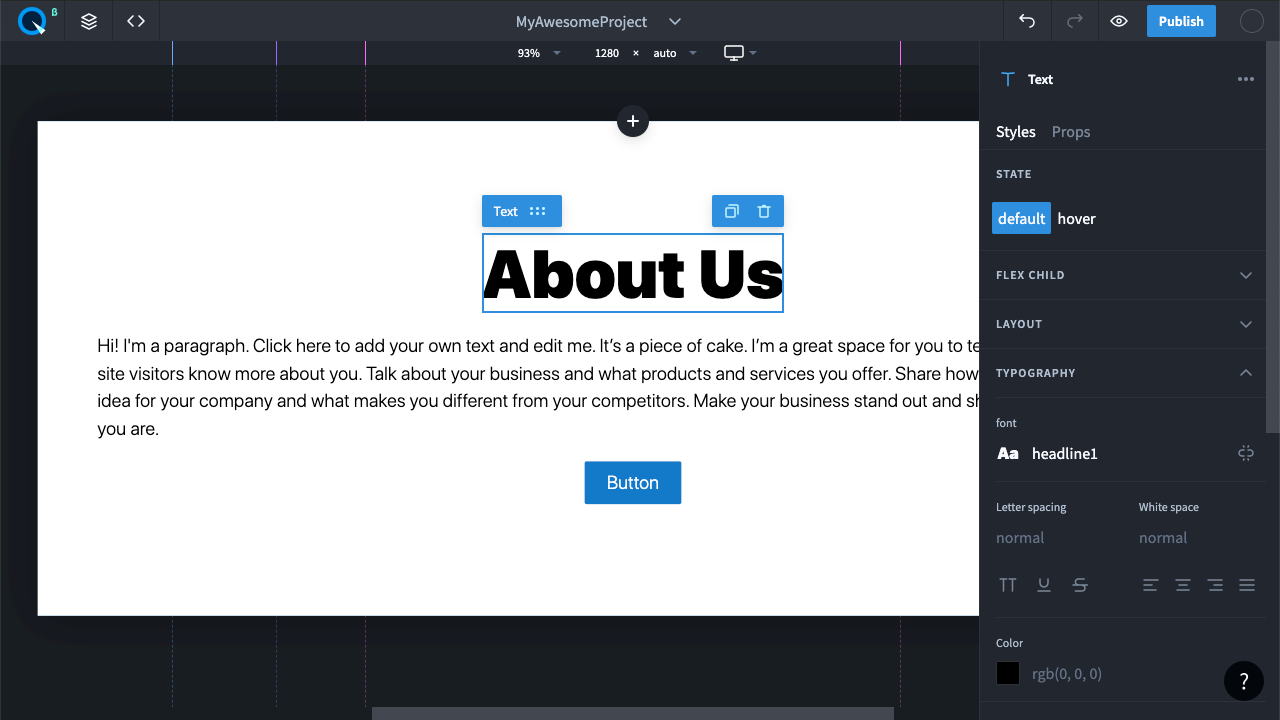 Измените цвет текста в правой панели свойств