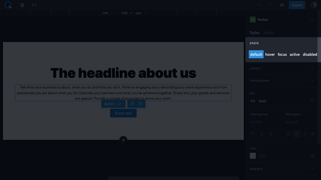 Here, you can set the visual representation of the element. You can configure both default state and pseudo-class styles: hover, active, focused and more.