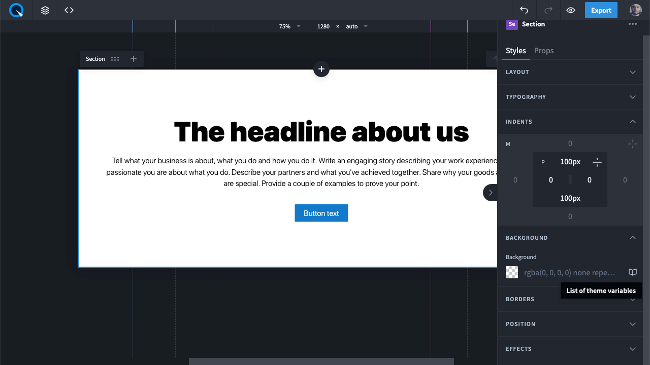 To add a background style from the theme to an element, go to the Styles panel, click on the